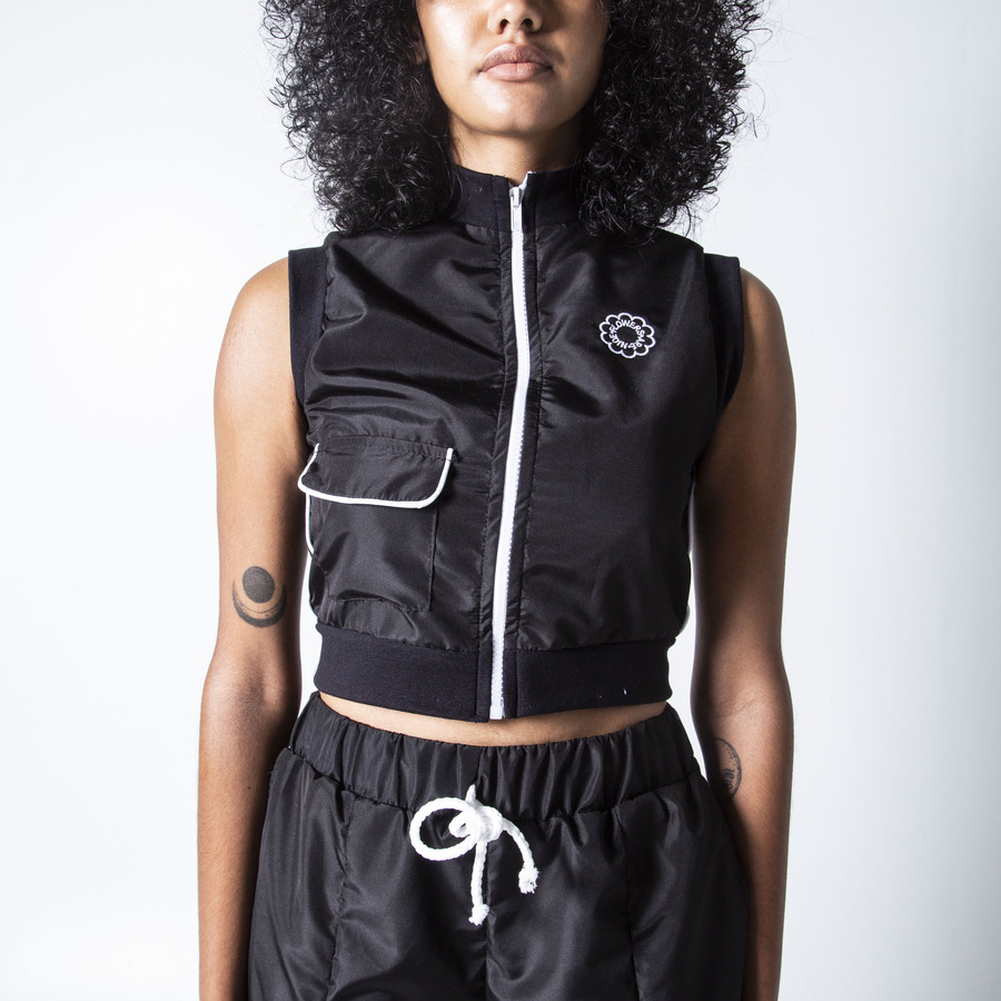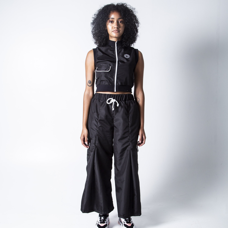 Turtle neck cropped top with circle cut out on either side with drawstring detail