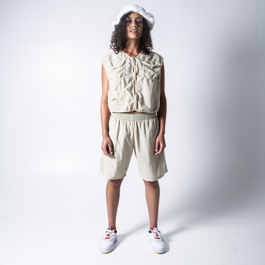 Turtle neck cropped top with circle cut out on either side with drawstring detail